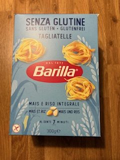 Det är generellt svårt att hitta bra glutenfri pasta. Så, när man hittar en som är bra så blir man glad. Jag gillar inte själv tagliatelle men ibland är det trevligt med omväxling. Mamma och Pappa gillar tagliatelle och färsk fettuccine. ICA’s tagliatelle är en bra bandpasta som man kan använda till snabba och enkla rätter. Koktiden på förpackningen är 7-8 minuter och den stämmer rätt bra. Man vill inte överkoka för då blir det bara en massa småbitar när man ska blanda i pesto eller vända ner pastasås. Man brukar säga 75-80g pasta per portion så om man är fyra är det läge att köpa två förpackningar. 250g är i underkant. det borde varit minst 300g. Priset är runt 30kr plus minus någon krona och det är väl överkomligt i en glutis ögon och ligger i samma prisklass som konkurrenterna. Några av konkurrenterna kommer vi recensera här.