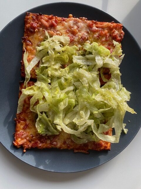 Som snack funkar denna utmärkt. Om man behöver bli mätt får man ta två. Jag brukar som sagt också ha en sallad till. Här följer recept på min enkla sallad.